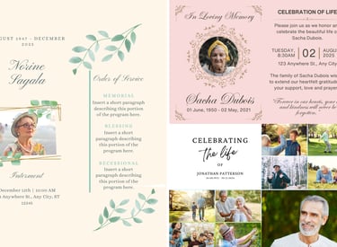 We create digital memorial services for clients, including custom obituaries, memorial programs, and celebration of life tributes—professionally designed to honor life, legacy, and remembrance.