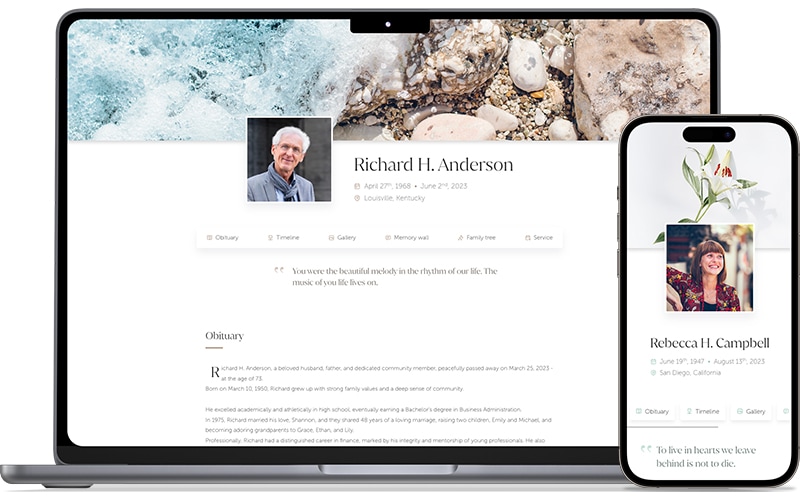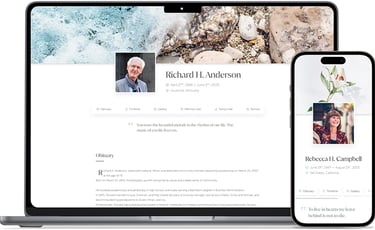 An elegant, shareable online space to hold photos, stories, and tributes.